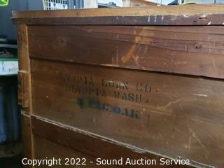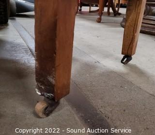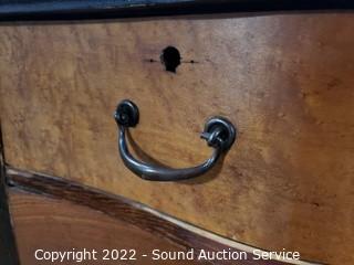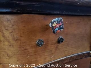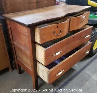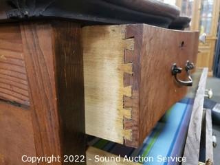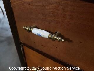 Lot Details: Several porcelain pulls, pulls do not match. Solid wood construction, dovetail joinery. Various wear from age & use. 34" H x 38" W x 18" D.