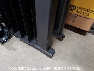 Lot Details: 6ft H x 6ft W x 2ft D. Steel grate shelves. Some wear from use, overall great condition, complete. Believe each shelf holds 2000lb. ATTN: Stock images, when included, are representations of the items and are not guaranteed to be exactly what is in the lot.