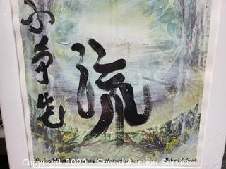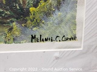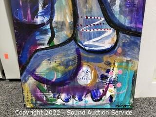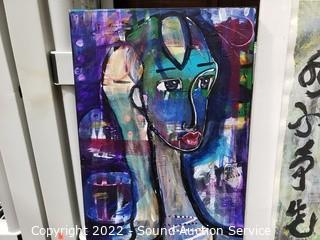 Lot Details: Abstract portrait 24" x 12", painted on wood, refer to photos for signature. And Melanie Cordell Signed "Flowing Water Encounter No Obstructions" painting, 21" x 27".