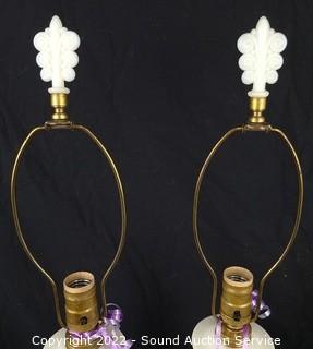 Lot Details: Both rewired with glass scroll finials, no shades. 26" H x 5" Dia. Work.