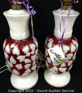 Lot #0237: 2 Vtg. 1949 Aladdin G321 Alacite Glass Table Lamps