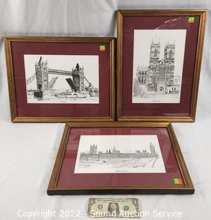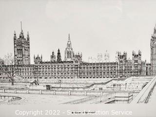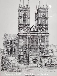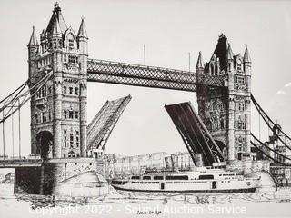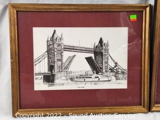 Lot Details: Tower Bridge, The House of Parliament, West Minster Abbey. Framed, matted with glass. 17" x 14".