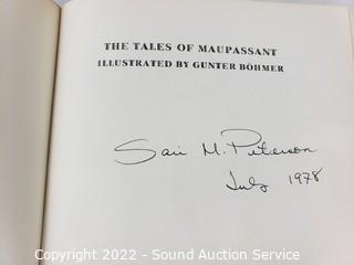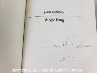 Lot Details: Washington Irving "The Sketch Book of Geoffrey Crayon" c.1967, "The Tales of Guy de Maupassant" c.1977, Jack London "White Fang" c.1973 (some water? spots, musty odor).