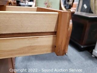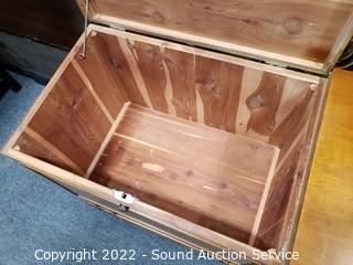 Lot Details: Maple finish, cedar lined, appears to be solid wood construction. Some minor wear to finish, overall great condition. 28" H x 45" W x 18" D.
