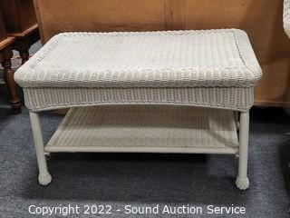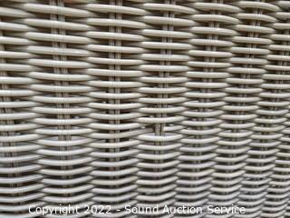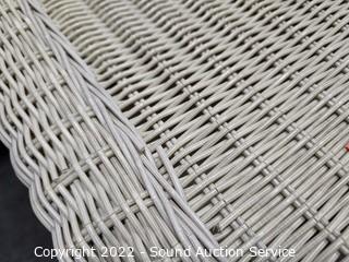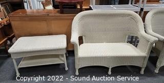 Lot #0011: Ivory Rattan Woven Loveseat & Table