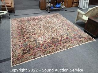 Lot #0081: Karastan Floral Kirman 8'8" x 8'8" Wool Rug