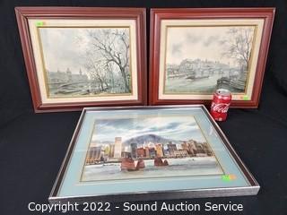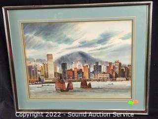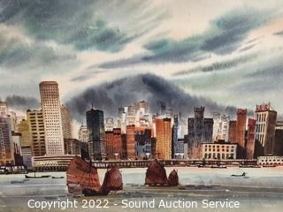 Lot #0052: Original Hong Kong Harbor Watercolor & 2 Prints