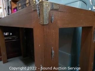 Lot Details: 26" H x 47" W x 15.25" D. Some foam tape residue, scuffs, scratches. Brass accents.