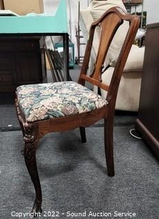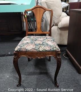Lot #0003: Tapestry Upholstered Carved Accent Chair