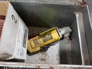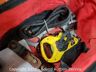 Lot Details: DeWalt angle grinder works, wheels, plane, 100ft tapes & more. 18" & 20" toolbox, 28" tool bag. Has a pest urine odor.