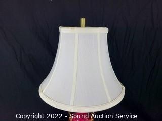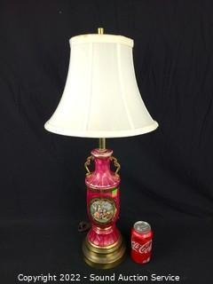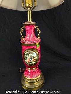 Lot #0095: Victorian Print Porcelain Base Table Lamp - Works