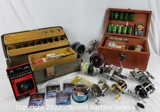 Lot #0157: Vintage Fishing Reels & Tackle Boxes w/Some Tackle