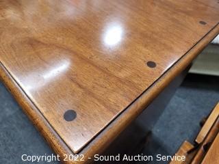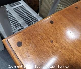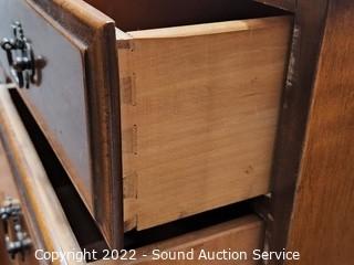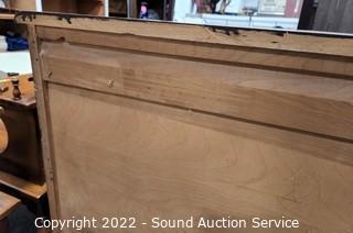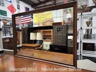 Lot Details: Matches the previous lot. Appears to be solid wood construction, dovetail joinery. Mirror is wall mount, but wire is broken, needs re-strung. 35.5" H x 56" W x 19" D with 28" x 48" mirror.