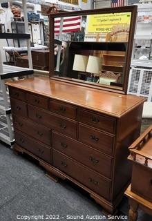 Lot #0008e: Vtg. 10-Drawer Maple Dresser w/Mirror