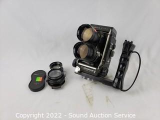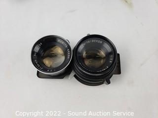 Lot Details: Rim of lenses has some bends, don't believe effects function. 1:28 f=80mm & 1:4.5 f=18cm lenses.