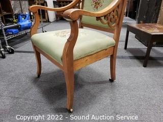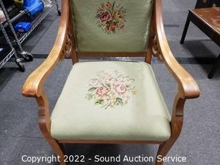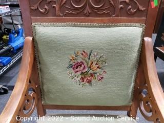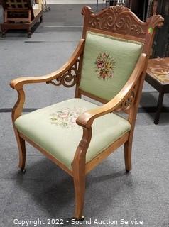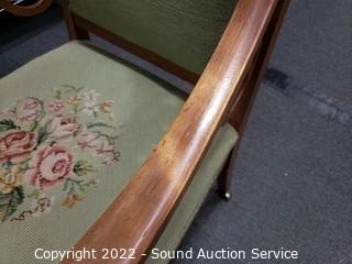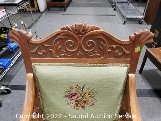 Lot #0020: Vtg. Tapestry Upholstered Carved Accent Arm Chair