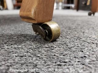 Lot Details: Solid brass casters. 41" H x 24.5" W x 17" to seat. Some light wear to finish from age, use.