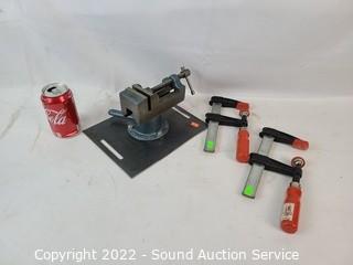 Lot #0199: 2 Bessey 6" Clamps & Palmgren 2.5" Machinist Vise