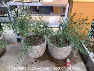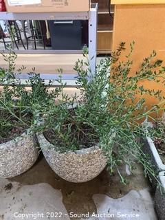 Lot #0316: 2 Exposed Concrete Planter w/Faux Plants