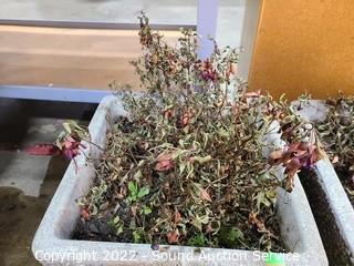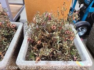 Lot Details: 11" H x 14" x 14" planters. Plants could use some TLC.