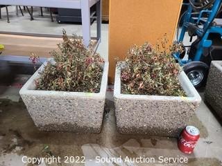 Lot #0315: 2 Exposed Concrete Planter w/Live Plants