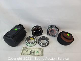 Lot Details: Orvis Battenkill V, appears unused. Grey's GX500 with 2 spare reels, in excellent condition. Both with storage cases. No issues.