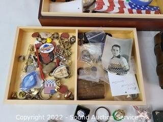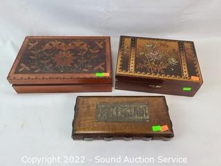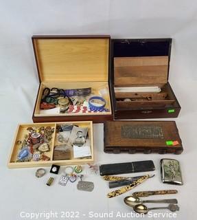 Lot #0190: 3 Trinket Boxes w/Some Trinkets & Ephemera