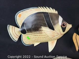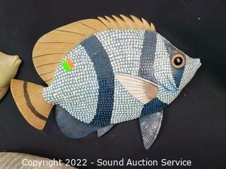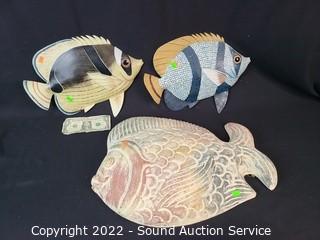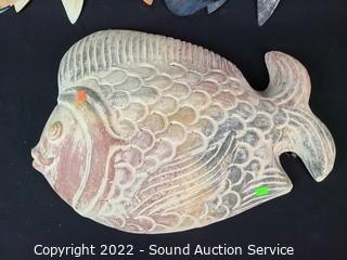 Lot Details: 2 composite resin (finish is flaking off), & Pottery. 11" x 15" & 20" x 14".