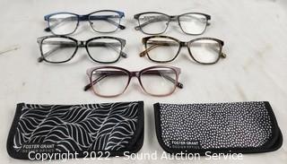 Lot #0259: 5 Foster Grant +3.0 Reading Glasses w/1 Cases