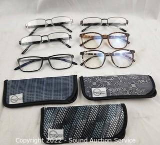 Lot Details: 2 are blue light glasses.1 full frame plastic, 3 semi-rimless metal.