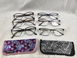 Lot #0261: 6 Foster Grant +2.5 Reading Glasses w/2 Cases