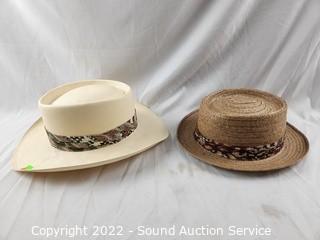 Lot Details: Dobb's Fifth Ave. Dorfman Pacific, Fiesta Biltmore, Stetson "The Gun Club", Wallaroo Hat Co. S:L/XL. Don't see any major issues.