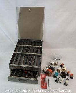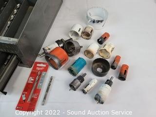Lot #0117: Assorted Hole Saw Bits & Display of Drill Bits