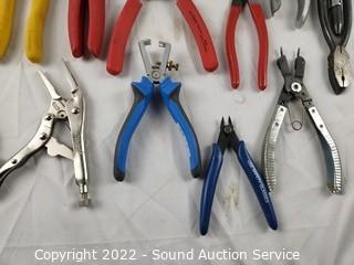 Lot #0074: Assorted Pliers, Cutters, Wire Strippers & More