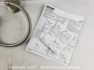 Lot #0144: Kohler 4pc Brushed Nickel Bathroom Accessory Set