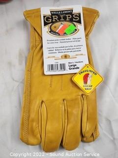 Lot Details: 9" x 12.5" x 9" Duluth Trading Co. bag, Wells Lamont cowhide leather gloves S:L, unused. Protektor Model leather tool bag. All in excellent condition.