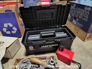 Lot Details: Stencils, Craftsman 15" toolbox, digital scale, flaring tool kit, & more. Refer to photos for lot contents.