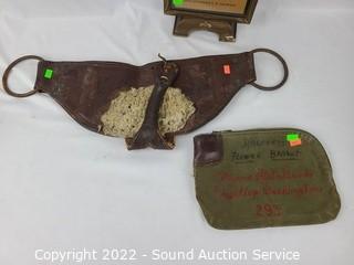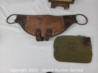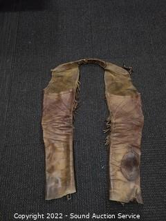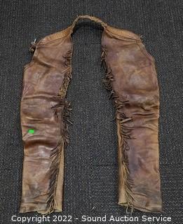 Lot #0128: Leather Chaps, Bronco Handle, Bank Bag