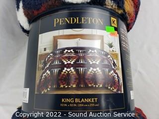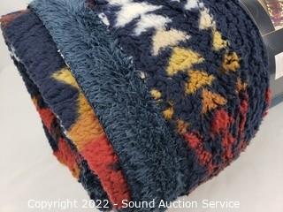 Lot Details: Legend Lake Dark Blue Print. 92" x 112".