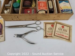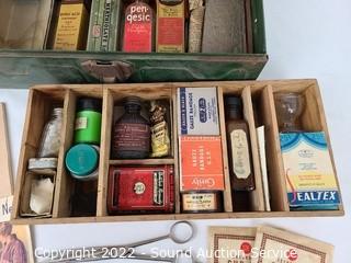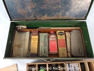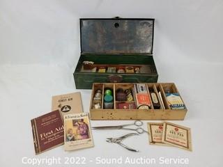 Lot #0111: Vtg. Tin First Aid Kit w/First Aid Supplies