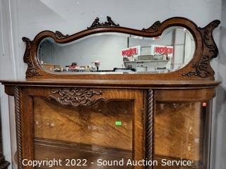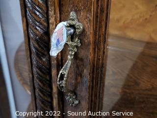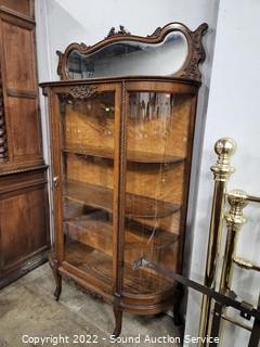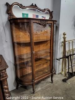 Lot #0003k: Antique Oak Bowed Front Curio Cabinet