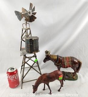 Lot Details: Windmill is 20" tall. 4" and 8" tall horse figures.
