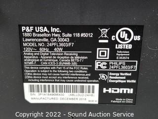 Lot Details: For some reason unable to change channels on both, buttons will not change channels on the TV one with remote also will not change channels. Both have power. Philips 24" 720p LED/LCD HDTV w/Remote & Element 32" Smart LED HDTV - NO remote. Both come with original boxes.