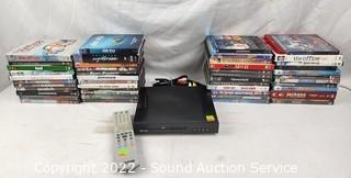 Lot #0091: DVD Player w/Remote 40 DVD & 3 Blu-Ray's