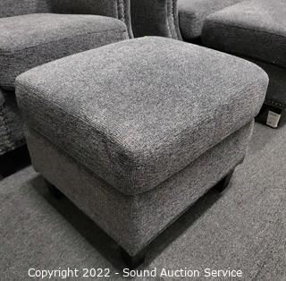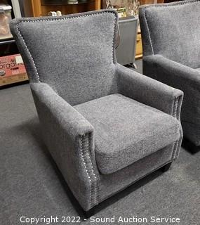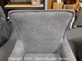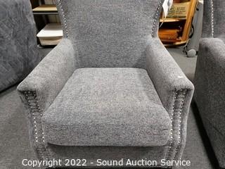Lot #0003m: Gray Fabric Nailhead Accent Chair w/Ottoman