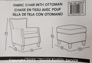 Lot Details: Like new condition, still has original tag. 37" H x 27" W x 19" to seat chair, 18" H x 22" x 20" ottoman.