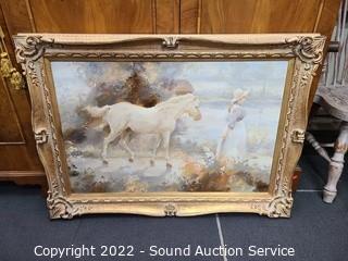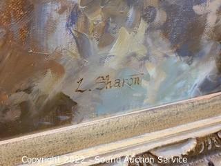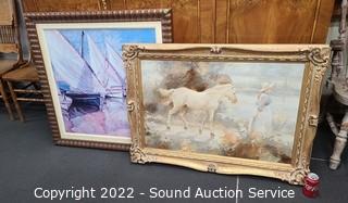 Lot Details: Both with nice frames. 38" x 38" sailboat print. 43" x 31" L.Sharon signed horse canvas oil painting.