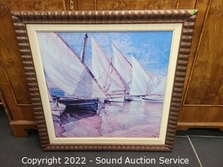 Lot #0240: Large Sailboat Print & Original L.Sharon Painting