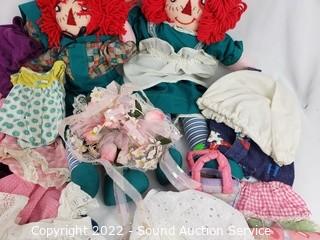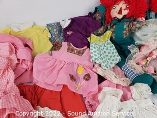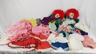 Lot #0250: Raggedy Anne & Andy Cloth Dolls & Doll Clothing