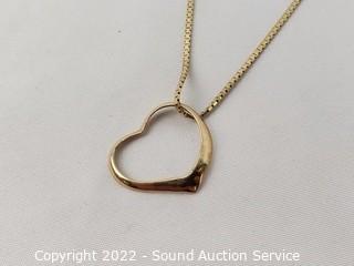 Lot #0242: 14k Gold 18" Flat Chain Necklace w/Heart Pendant
